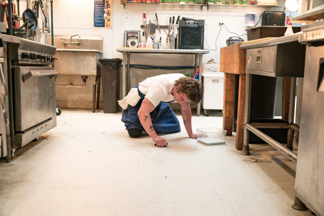 Сначала я долго извинялся за то, что нарушаю порядок в отличном заведении. Я всем, даже тем, кто меня не знает, давал понять: «Я не повар. Я здесь, чтобы учиться. Извини, если я что-то тебе испортил». Что касается гостей, у меня всегда была маска и бейсболка, так что я никогда не сталкивался с чем-то подобным.