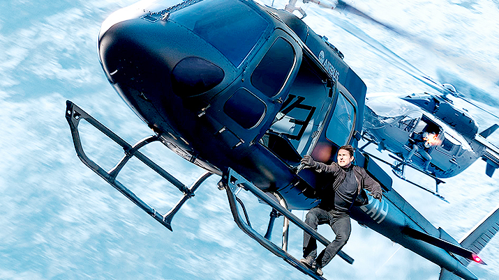 В фильме «Последствия» есть примерно три «черт возьми»-момента: когда Том прыгает на канат во время взлета вертолета, когда он падает с него и когда сам пилотирует, выполняя пикирование со штопором на 365 градусов. Чтобы научиться управлять вертолетом, Том прошел летную школу, где был признан одним из самых преданных делу и внимательных студентов. Набрав примерно 2000 часов летной подготовки, Круз уселся за штурвал, а на носу вертолета были закреплены камеры, демонстрирующие — Итан Хант действительно один в кабине. Так что актеру пришлось еще и аппаратурой управлять. Тот самый заставивший всех потерять дар речи штопор — уникальное событие. По словам координатора трюков Уэйда Иствуда, не каждый профессиональный пилот решился бы на такое. Но самым страшным для команды было падение Круза — наблюдавшая за этим воздушным безумством с земли Ребекка Фергюсон сказала, что не на шутку перепугалась за партнера, когда он ударился о свисающий с вертолета груз. Небольшой разрядкой может стать сцена с игрушечными вертолетиками — именно так съемочная группа репетировала будущие маневры.
