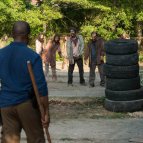 наконецто!!!!! за 7 сезонов наконец таки появились адекватные люди которые додумались одеть какую-никакую зашиту и сделать оружие с длинным древком чтоп не кидаться впритык на зомби. А ннет, у них во главе черный тип с дредами и тигром который зовет себя королём