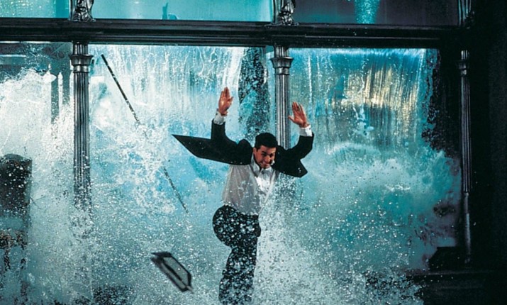 В фильме 1996 года наш сегодняшний герой еще не доводил окружающих до нервных обмороков своими рискованными выдумками, и сцена с разлетающимся на тысячу осколков аквариумом в ресторане выглядит совсем невинной по сравнению со всеми последующими дикостями «Миссии». Тем не менее в шоу Грэма Нортона в 2018-м Том сообщил, что трюк с аквариумом был довольно сумасшедшим, поскольку они с координатором не могли договориться, в какой момент съемки толстое стекло разлетится вдребезги. В итоге сцена со взрывом, тоннами воды и осколками оказалась эффектной, но не такой опасной, чтобы кого-то травмировать.