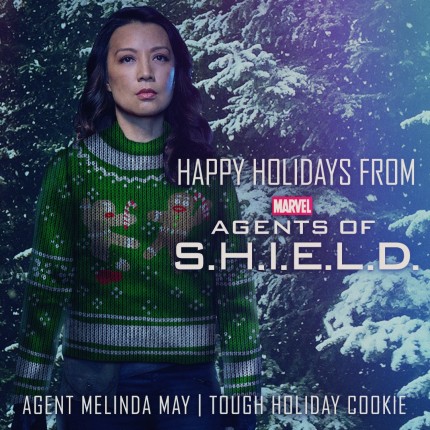 Католическое Рождество, праздник куда более важный для европейцев и американцев, чем Новый год, наступит буквально через несколько часов. В связи с этим многие команды сериалов спешат поздравить своих поклонников. Не остались в стороне и «Агенты Щ.И.Т.», хотя им возвращаться на экраны только летом следующего года. По радостному поводу в свитер с пряничными человечками принарядилась даже крепкий орешек всей команды — агент Мелинда Мэй (Минг-На).